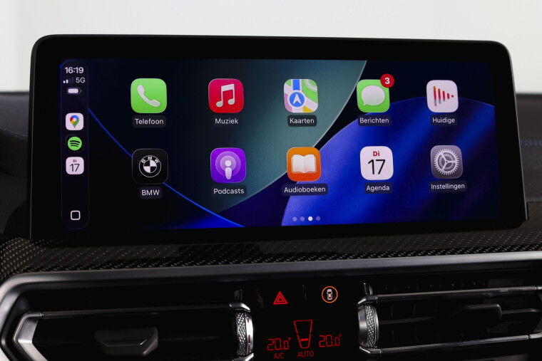Binnenin valt direct het volledig digitaal instrumentenpaneel en de head-up display op, waardoor belangrijke informatie overzichtelijk in beeld wordt gebracht. Het interieur is afgewerkt met individual lederen bekleding en carbonafwerking in het interieur, wat zorgt voor een sportieve en hoogwaardige uitstraling. De sportstoelen bieden goede zijdelingse steun en extra comfort, mede dankzij de elektrisch verstelbare stoel met geheugen en voorstoelen verwarmd. Ook de stuurwielverwarming is aanwezig, prettig tijdens koude dagen.